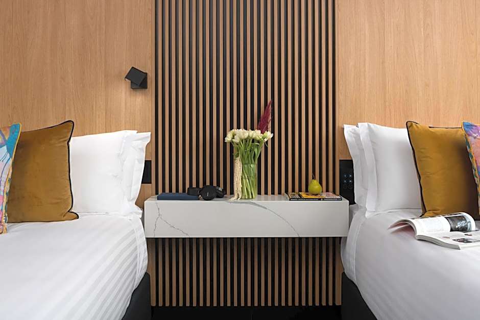 The rooftop pool is a top feature of this twin room. Featuring free toiletries and bathrobes, this twin room includes a private bathroom with a shower and a hairdryer. The air-conditioned twin room features a flat-screen TV with streaming services, soundproof walls, a tea and coffee maker, a wardrobe as well as city views. The unit has 2 beds.